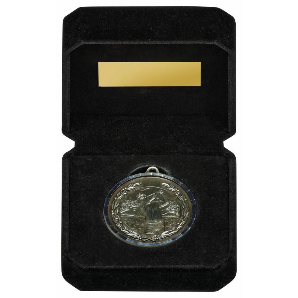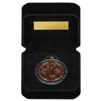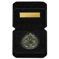 Graveringsplate monteres inne i boxen - eller graveres på bakside av medaljen
